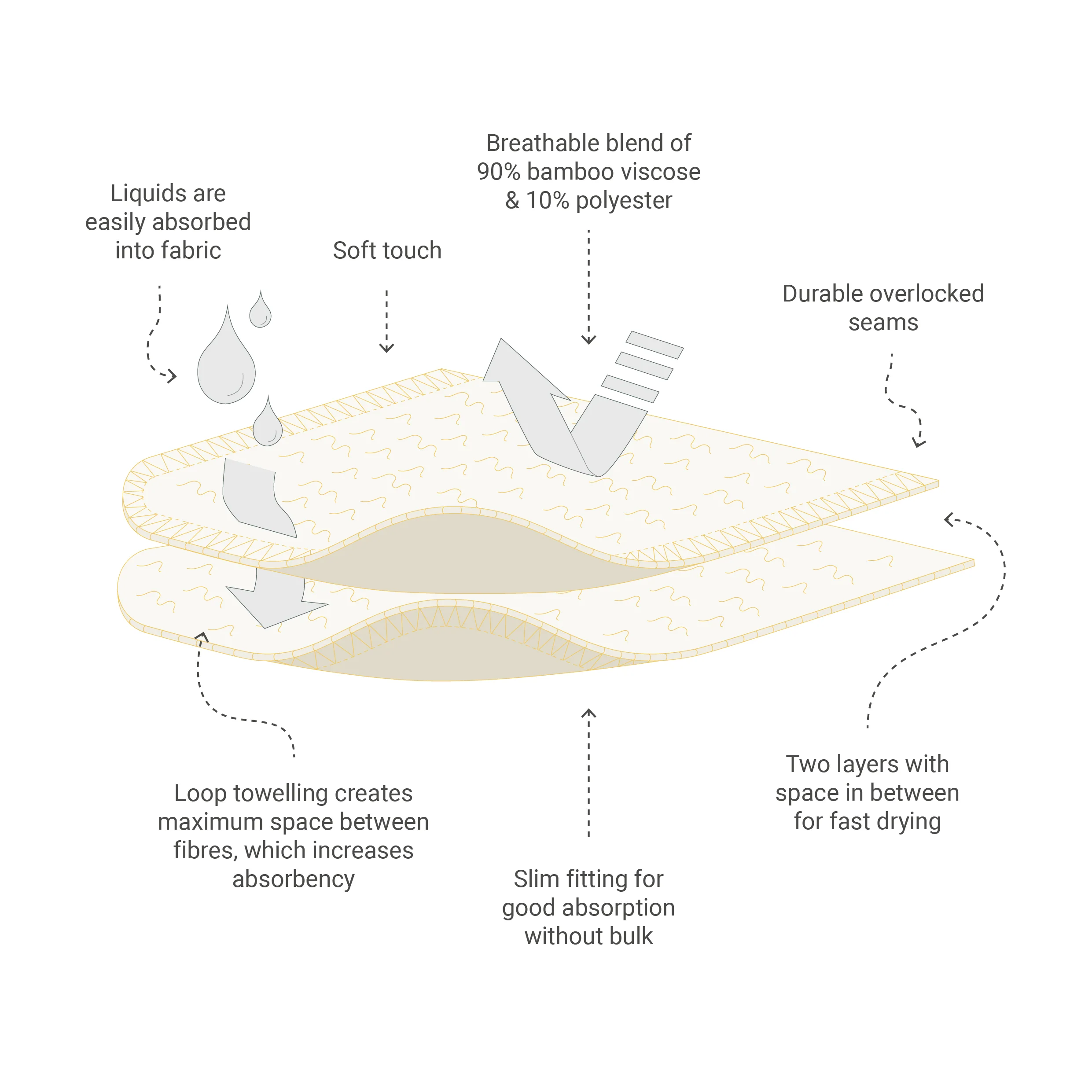 Quick Drying Design: Liquids absorb quickly into the bamboo fabric, while the innovative loop towelling maximises space between fibres for optimal absorption; The double-layered booster pad facilitates quick drying for maximum comfort and prevents leakage.Â